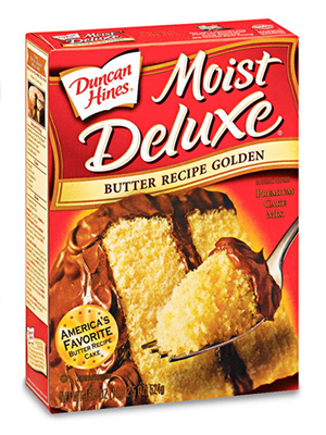 Back to moist. Despite its being such a slimy word, the big three cake mix makers use moist as a key brand attribute. They’ve even turned moist into a sub-brand: Super Moist, Moist Deluxe, Moist Supreme. Are we moist enough yet? I can still sing the jingle from an old Duncan Hines spot : “So moist, so moistfully good, they’ll always come back for more.” Moistfully? It may have been slimy, but it stuck to my brain.