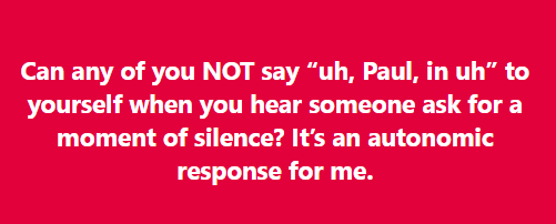 Uh, Paul, in uh…(when hearing a call for a moment of silence)